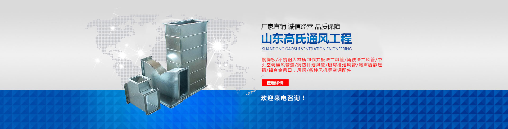 1.主要從事通風管道設計、制作、安裝為一體的企業,風雨中我們在濟南通風管道行業占據了一席之地